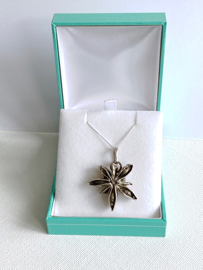 Thick band Silver ring with cast Star anise using lost wax method with seed head instead of wax.